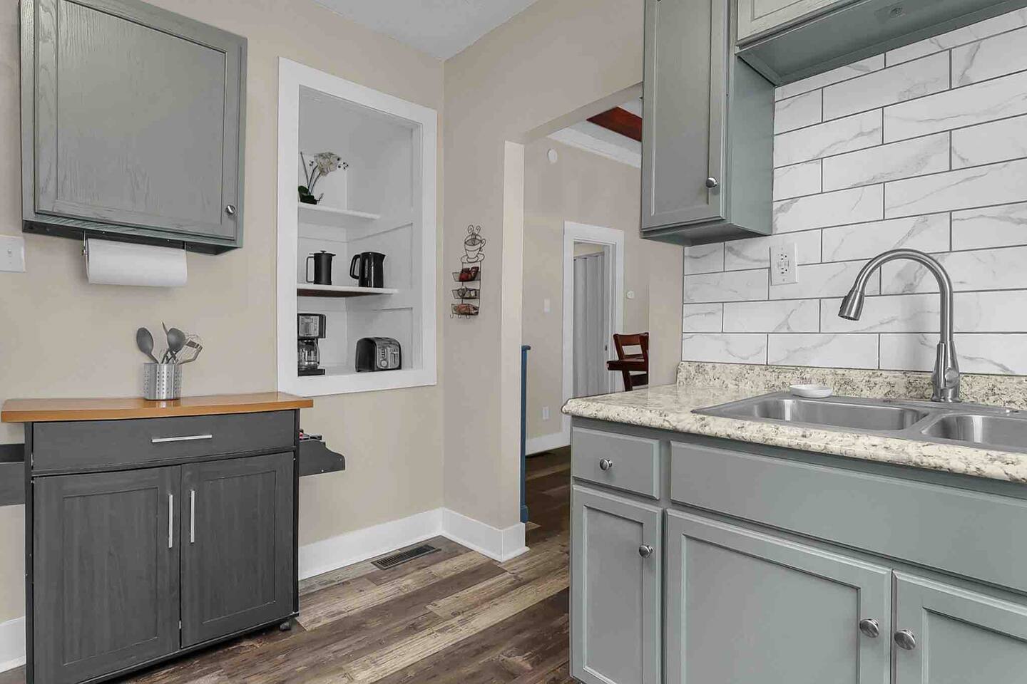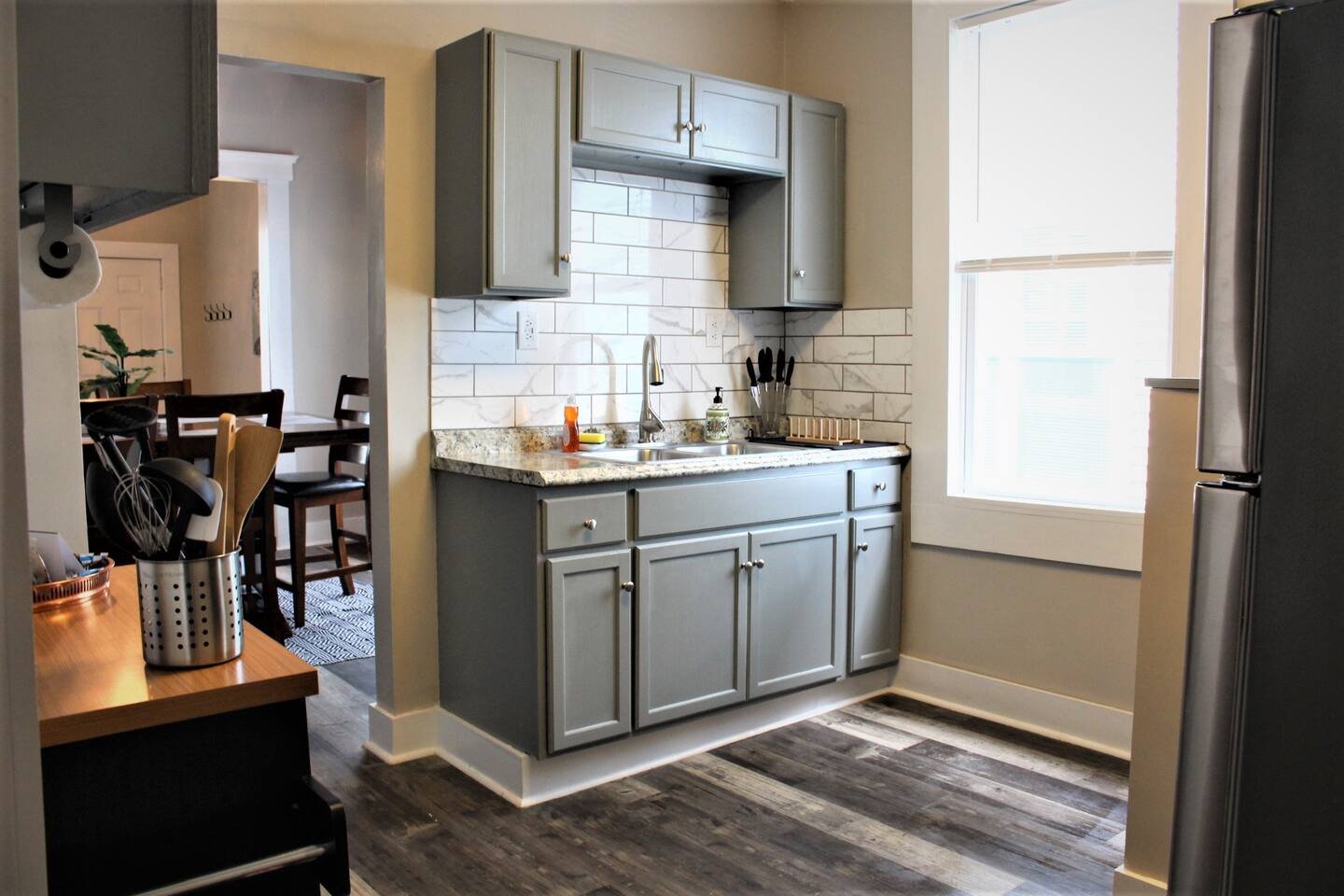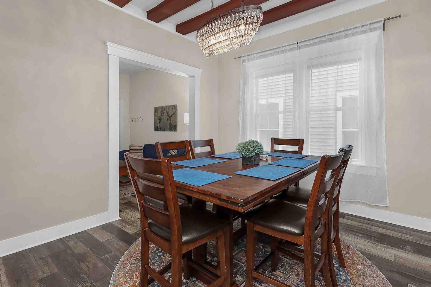 Trolley Place is on the first floor of a duplex property with a shared backyard. When you arrive, you will be greeted with easy street parking, a smooth self check-in process, and high-speed WiFi. The home includes tall ceilings throughout, a spacious living room, a separate dining room with wood beams, and a fully-stocked kitchen with stainless steel appliances. Both bedrooms offer queen-size beds, while one of them provides you with a desk for your workspace needs. Additional sofa bed offered in living room if needed. Your own private washer/dryer is also provided in the basement. No smoking on the premises (including enclosed backyard, deck, and porch areas) and no events/parties. Only guests listed on booking are allowed on property. Thank you for your understanding!