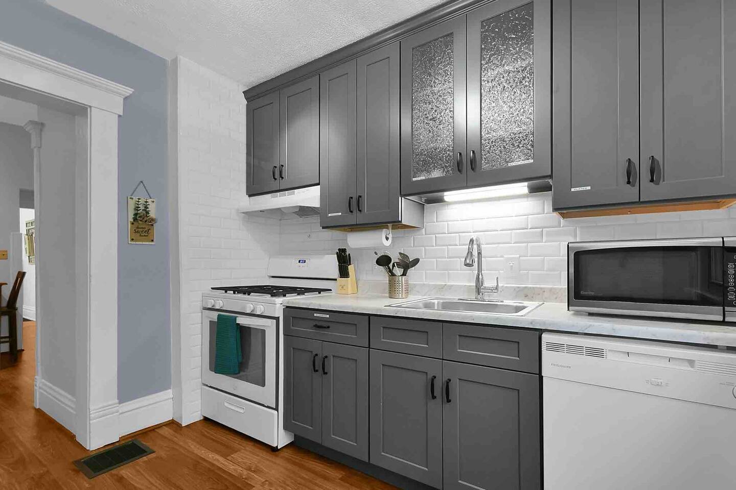 Please only park on right side of property along 20th street. There are several spots available and this leaves room for local residents to park in front of their houses. There is a small set of steps on front porch to entry door. Secure, personalized check-in code provided for length of stay.